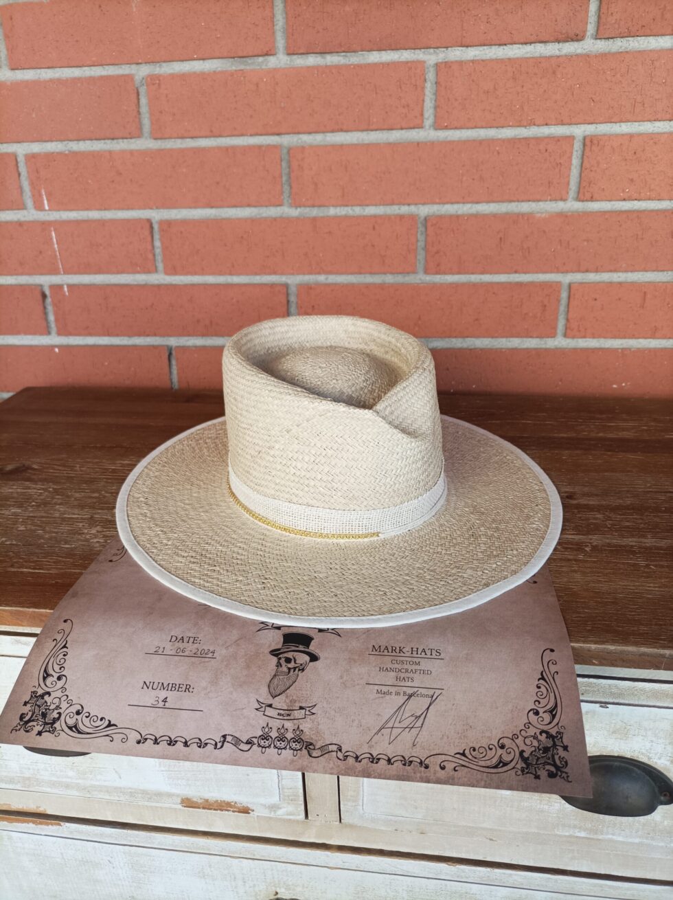 When you commission a handcrafted raffia straw hat, you start a bespoke experience. To begin with, we select high-grade natural raffia. This material is famous for its breathability and organic golden hue. Furthermore, unlike industrial headwear, our standard models follow rigorous quality controls. You can explore our Full Hat Collection to compare different designs. Also, visit our Sizing Guide to provide your exact measurements. Because we work on demand, we ensure that the straw is blocked specifically for your head shape.